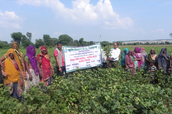केंद्र के प्रभारी डाण् एसण् केण् अग्रवाल ने बतया की प्रथम पंक्ति प्रदर्शन का उदेश्य यह है की उन्नत तकनीको के प्रदर्शन खेतो में लगाए ताकि किसान स्वयं फसल की उत्पादन क्षमता का आंकलन कर सके प्रदर्शन में उन्नत किस्म पीण्युण् .31 जो कम समय में पकती है व् उत्पादन १२.१५ किवंटल प्रति हेक्टर हैए बोने से पूर्व बीजोपचार ट्राइकोडर्माए राइजोबियम एवम पीण्एसण् बीण् कल्चर से किया गया.