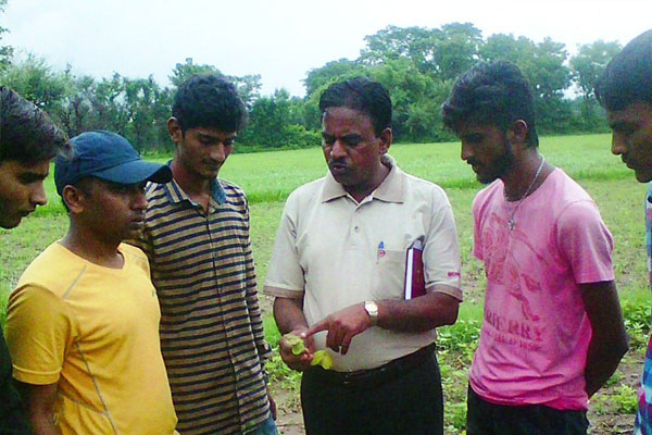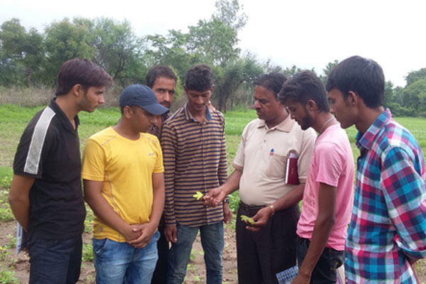 बीण् एसीण् रावे छात्रों मूंगफली की फसल में पोषक तत्व की कमी के लक्षन व् टिक्का रोग की प्रायोगिक तकनिकी जानकारी देते हुये