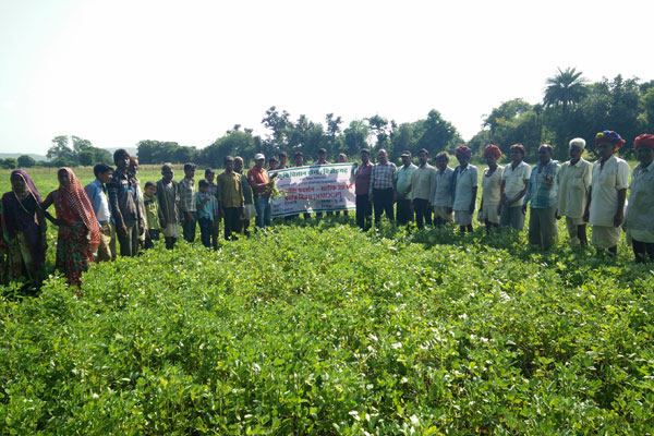 कृषि विज्ञानं केंद्र द्वारा माखनगंज गांव में राष्ट्रीय तिलहन एवम आयल पाम मिशन के तहत प्रथम पंक्ति प्रदर्शन के १० हेक्टर क्षेत्र में मूंगफली की किस्म यू.जी. -५ लगाया गया , केंद्र के प्रभारी ने बताया की यू.जी. -५ किस्म ९५-९७ दिन में पककर औसतन २२ किवंटल प्रति हेक्टर उपज देती है , इसके दानो में ४८ प्रतिशत तेल की मात्रा होती है l यह किस्म महाराणा प्रताप कृषि एवम प्रोधोगिकी विश्वविद्यालय, उदयपुर के द्वारा विकसित की गयी है l यह किस्म विभिन्न बीमारियों एवम कीटो के प्रति सहनशील है l इस प्रदर्शन में बीज बोने से पूर्व ट्राइकोडर्मा, राइजोबियम ,एवम पि.एस.बी कल्चर से उपचारित किया गया है, जिससे फसल में बीमारियों के प्रति बचाव एवम उवर्रक की बचत होती है.